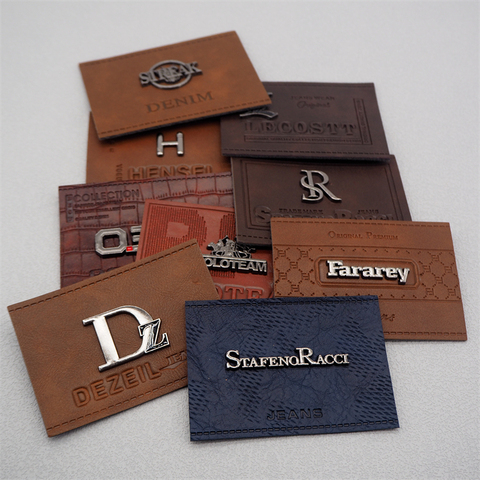 Custom Jeans Metal Pu Leather Patch Bags Brand Etiquetas De Cuero Para Ropa Logo Leather Tag for Clothes Garment Labels